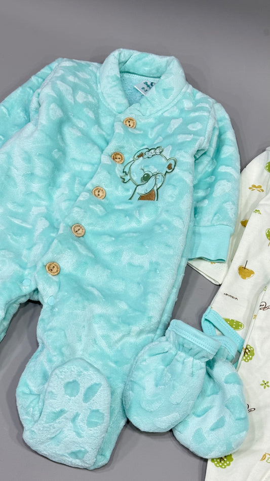 طقم مستشفى قطني للأطفال باللون الأخضر النعناعي