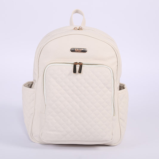 حقيبة ظهر من الجلد الصناعي باللون الأبيض العاجي