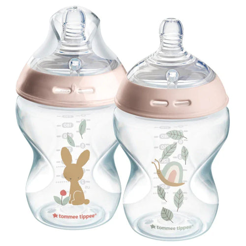 زجاجات تومي تيبي كلوزر تو نيتشر للأطفال، سعة 260 مل، لون وردي، عبوة من قطعتين