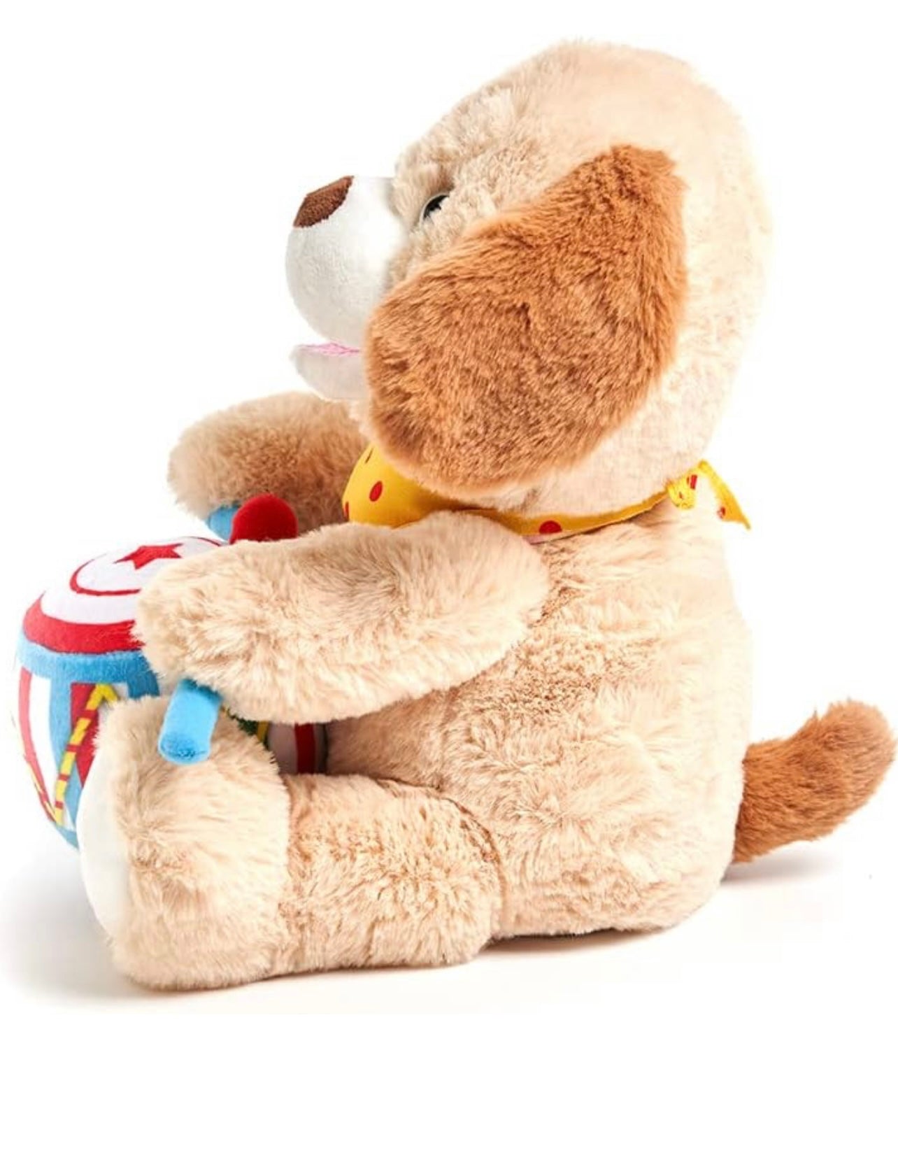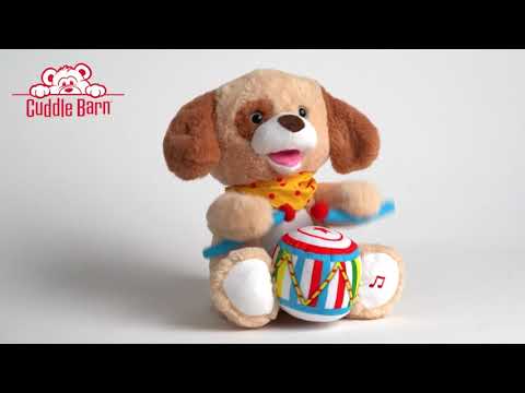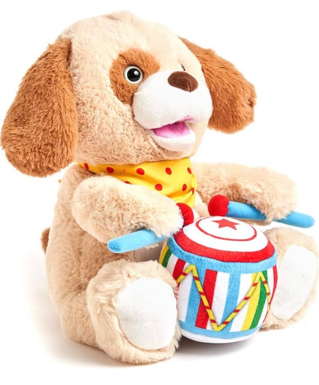 - درامين باكستون - اعزف وغنِّ مع درامين باكستون! هذا الجرو اللطيف يرتدي وشاحًا منقطًا أصفر وأحمر، ويحمل طبلًا ملونًا.