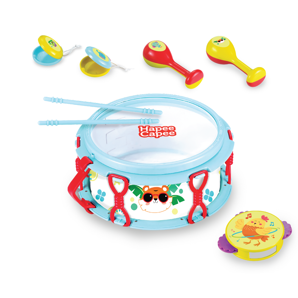 ●تتضمن طبولًا، وعصي طبول، ودفًا، وكاستانيت، وماراكاس للحصول على مزيج موسيقي سحري.
