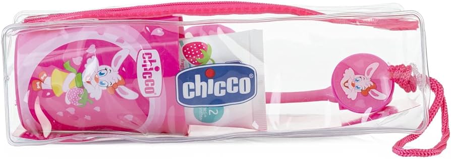 - Chicco toothbrush: with soft extra thin bristles delicate with gums, a head with tongue cleaner, a fun cap for maximum brush hygiene, and a suction cup to attach to the washbasin
