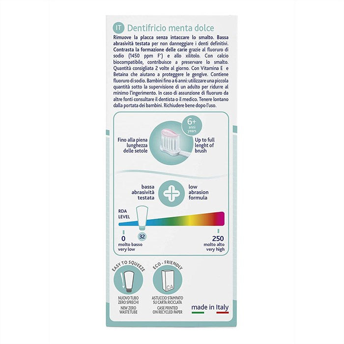 Does not damage milk teeth, thanks to the non-abrasive formula.