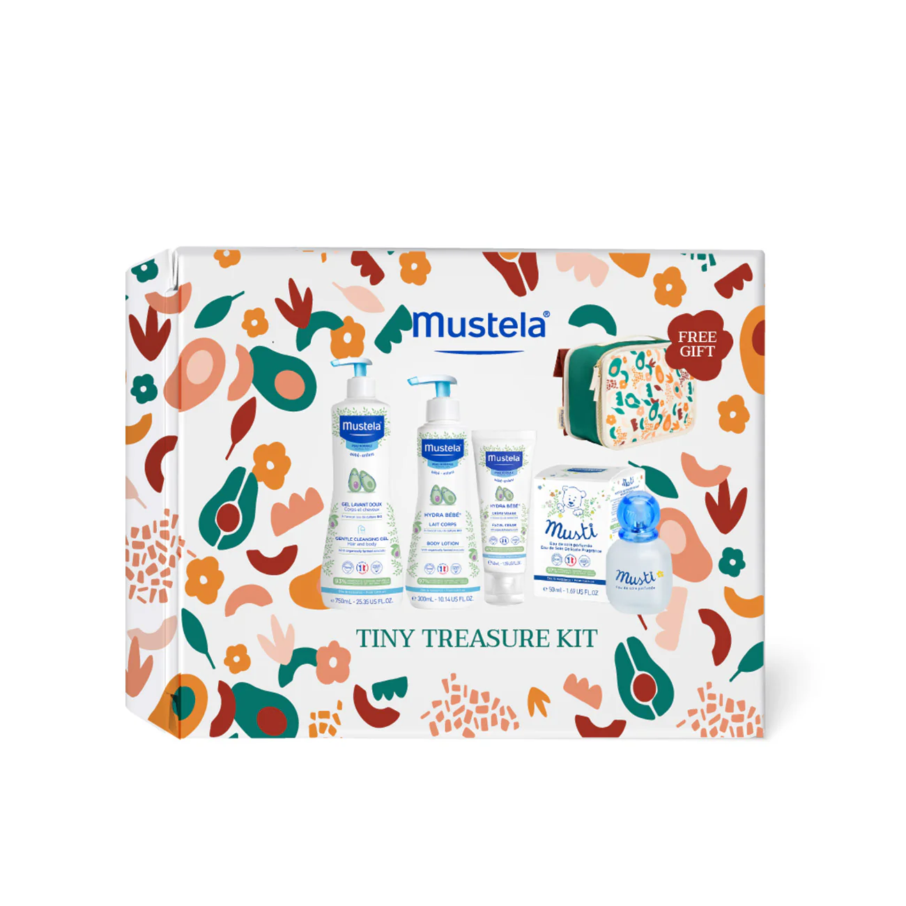 This set contains: Gentle Cleansing Gel with Avocado (500ml), Musti Eau de Soin Delicate Fragrance (50ml), Hydra Bebe Face Cream (40ml), Hydra Bebe body Lotion with Avocado (300ml), a free pouch.