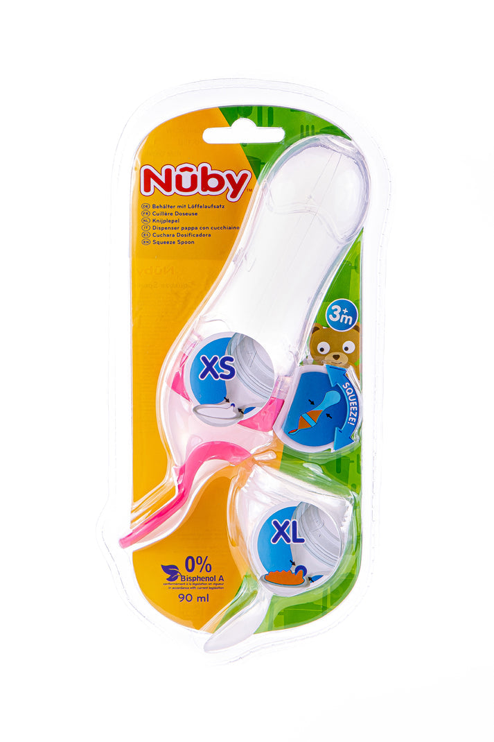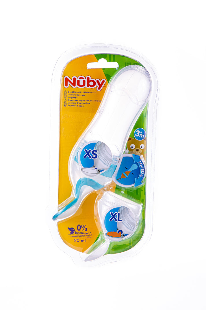 Nûby™ spoon with two heads that helps you easily give porridge and other semi-solid preparations to your child without the risk of spilling.